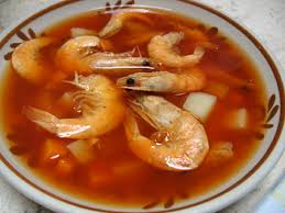 Lava el camarón seco con abundante agua hasta quitarle lo salado y colócalo en una olla con el agua, el puré y las papas; deja hervir 10 minutos. Agrega el chile cortado en tiras muy delgadas y las zanahorias; salpimienta. Cuando los vegetales estén tiernos, incorpora el pimientón y el camarón pacotilla. Cocina unos 5 minutos más, comprueba el sazón y sirve caliente. Acompaña con jugo de limón.